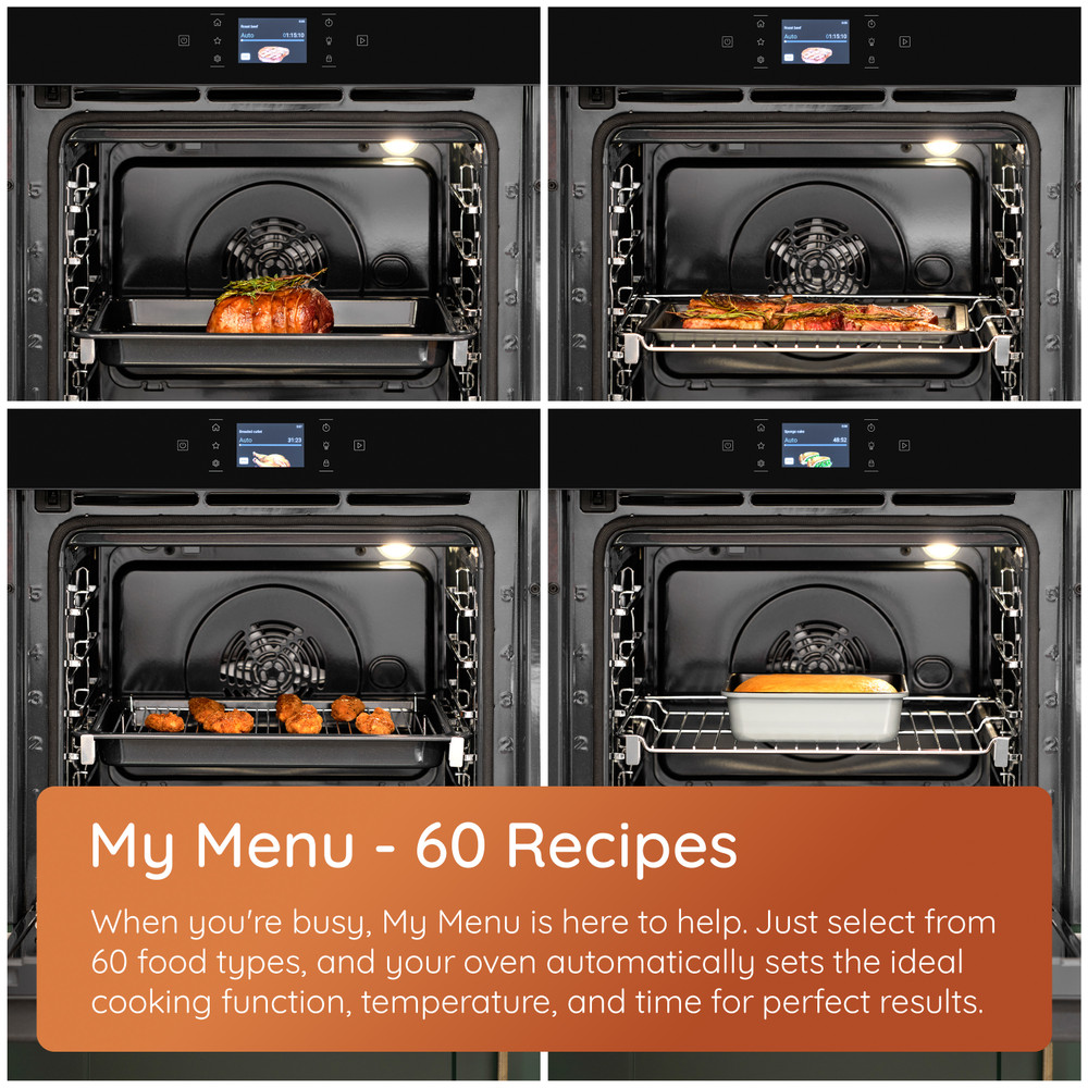 A selection of Pre-Set cooking preparations (up to 20) that can support you in achieving desired results. Select your preferred cooking method (eg. baked, roasted, grilled or steamed) or a specific food type based on your dish, and the oven automatically sets the ideal cooking type, temperature and time.