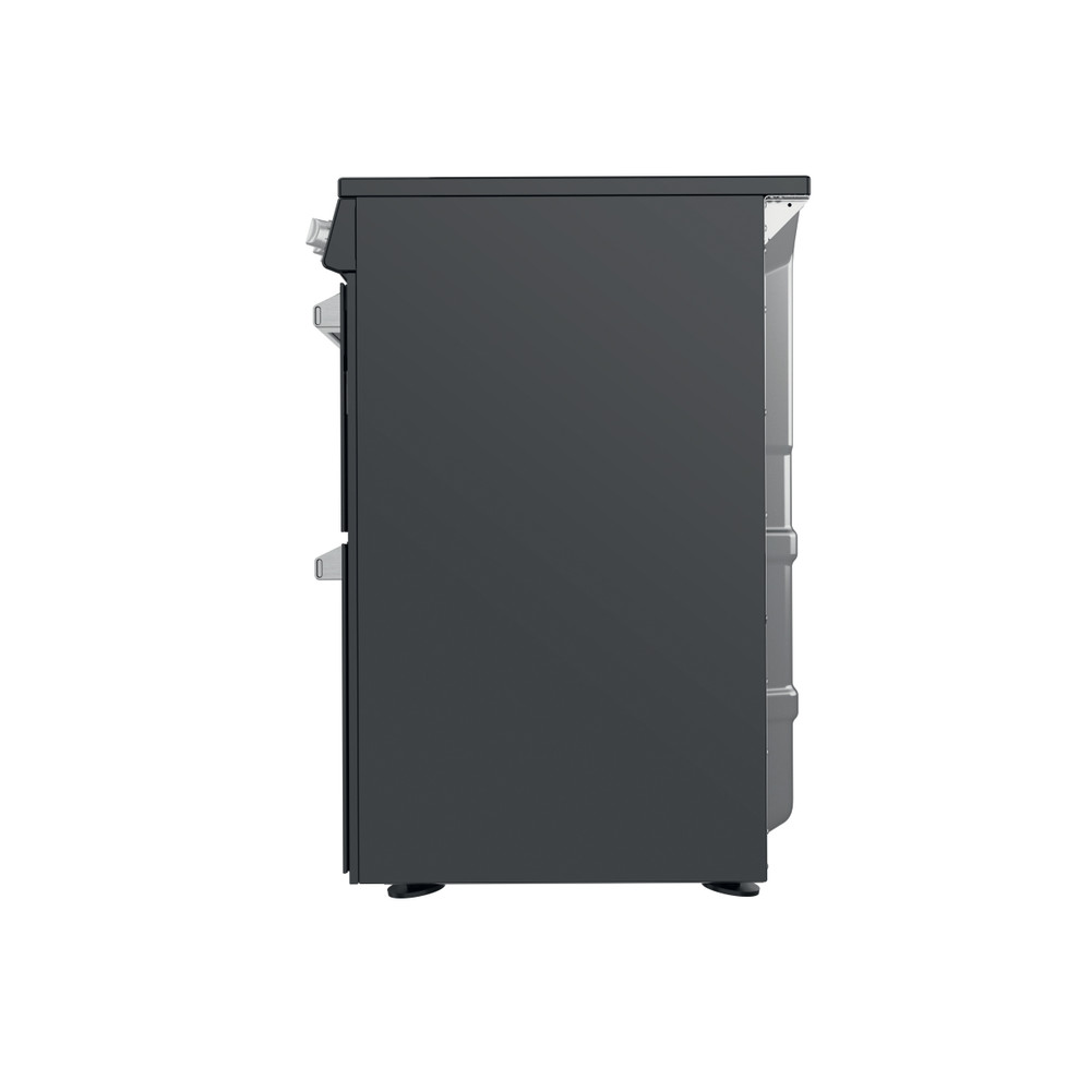 This Hotpoint freestanding 60x60 double cooker features: 4 electric plates. 4 radiant plates. Black colour. Electric power supply. 60cm width.