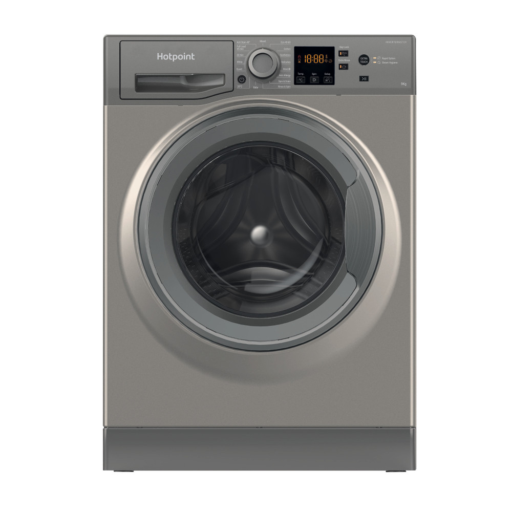 This Hotpoint freestanding front loading Washing Machine features: an extra-spacious, large 9,0kg capacity. B energy rating. A fast, resource-efficient 1400 revolutions per minute spin speed.