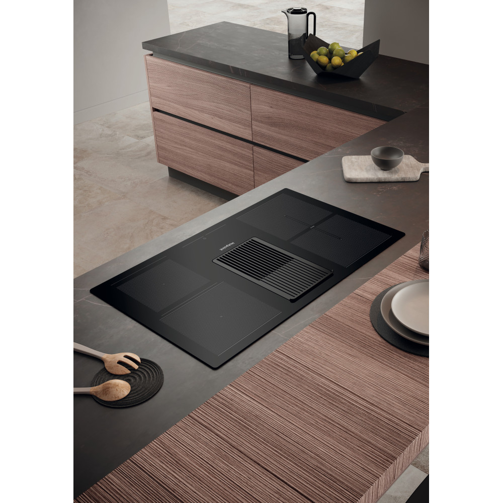 This Hotpoint induction glass-ceramic venting cooktop features: an elegant technology, that heats the pan, not the venting cooktop, reducing energy dispersion and providing perfect cooking results. 4 induction rings. 4 induction rings. Intuitive slider, for effortless control of your appliance settings.